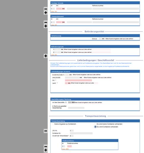 Mit dem Symbol können Sie weitere Länder der Beförderungsroute erfassen. |