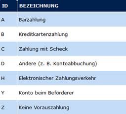 Ihnen eine Auswahlliste zur Verfügung, die Sie mit Die Beförderungskosten (Zahlungsart) in den Kopf- und in den Positionsdaten schließen sich gegenseitig aus.